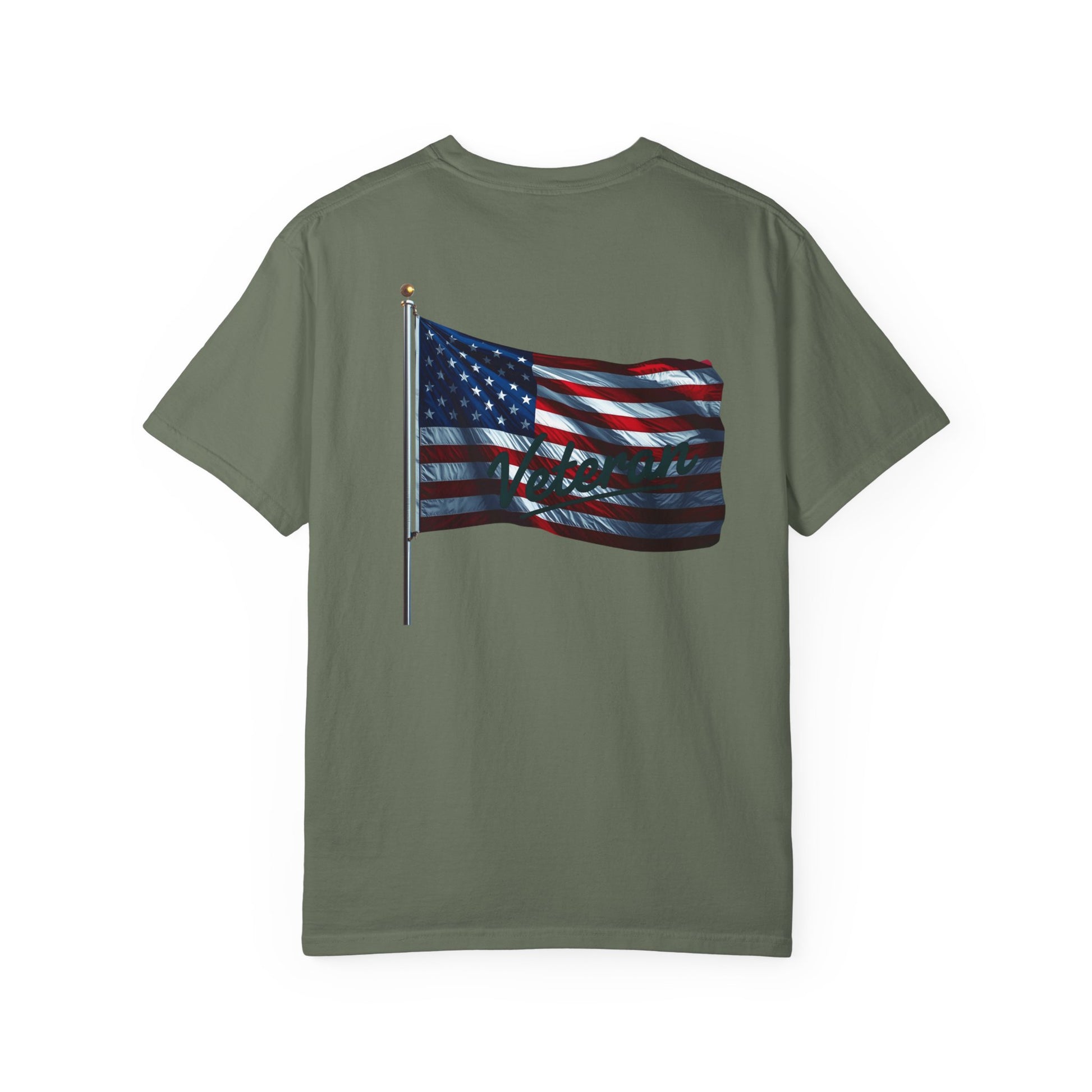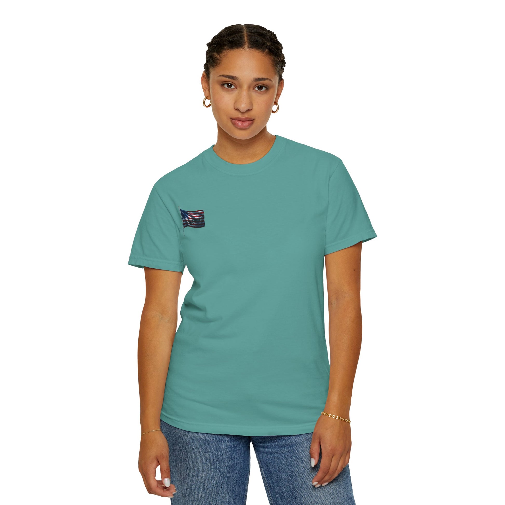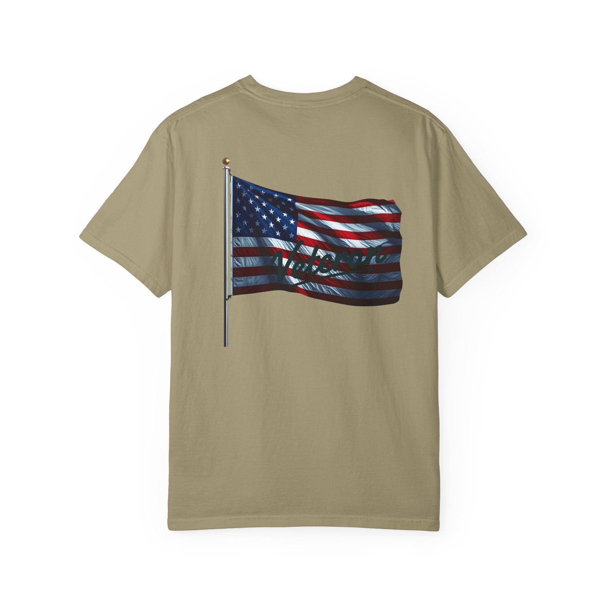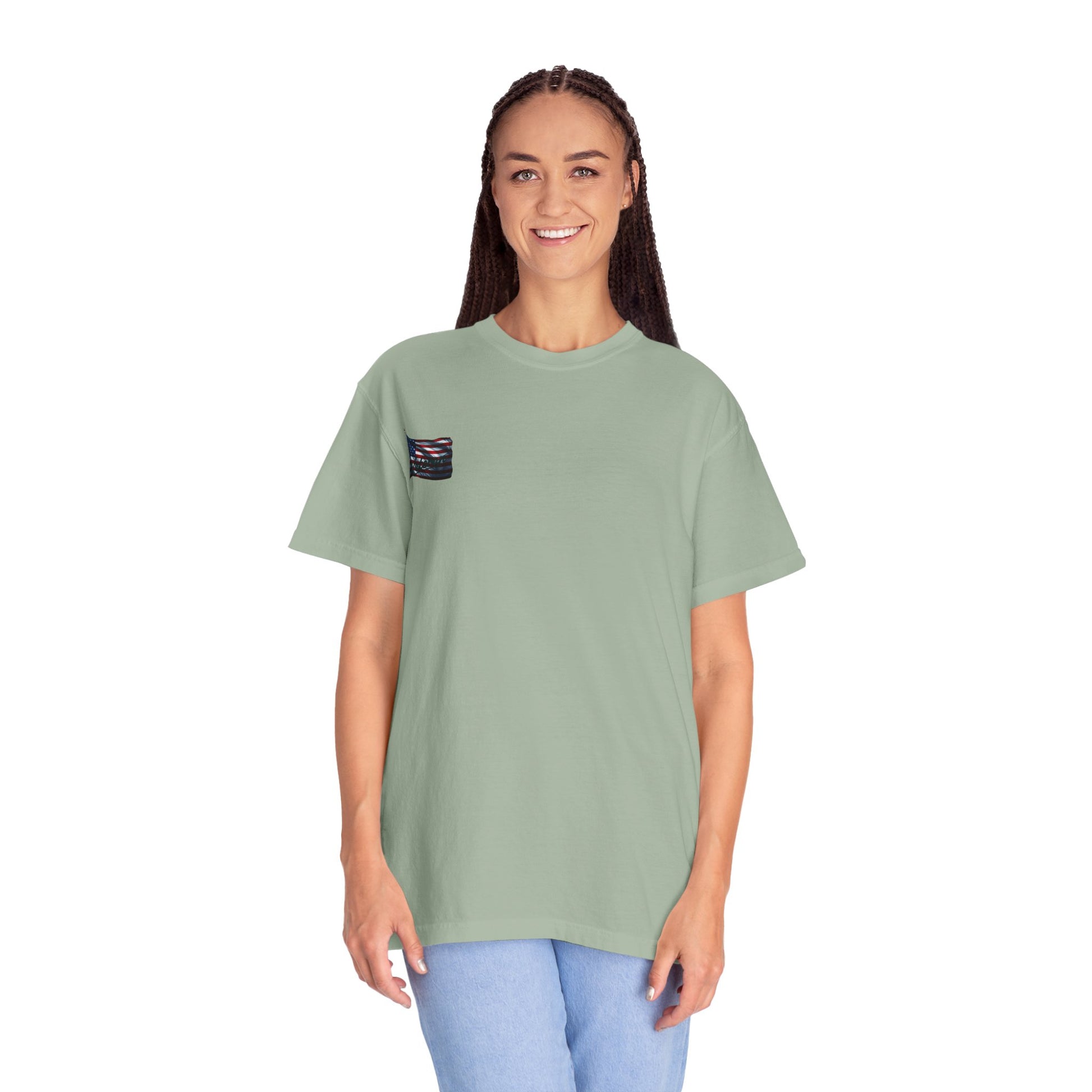A relaxed, heavyweight tee that feels like it’s already been lived in. Garment-dyed cotton gives the fabric a soft, broken-in hand and a muted, vintage tone that lets the printed flag art sit naturally on the chest and back. The roomy silhouette and sturdy double-needle seams hold shape through repeated wear. Wear it to slow summer barbecues, roadside trips, or evenings around a backyard fire when you want something that reads lived-in, honest, and quietly bold.