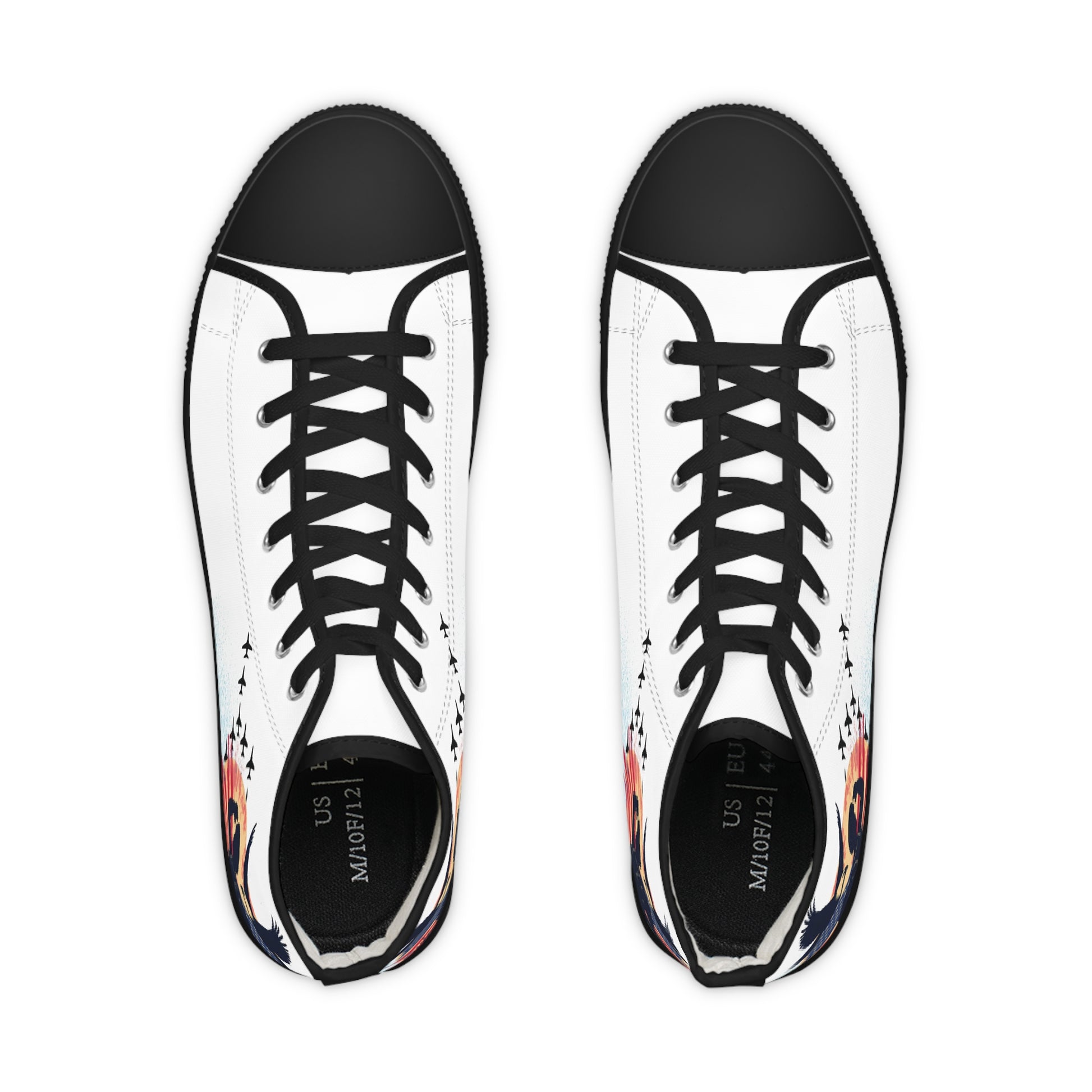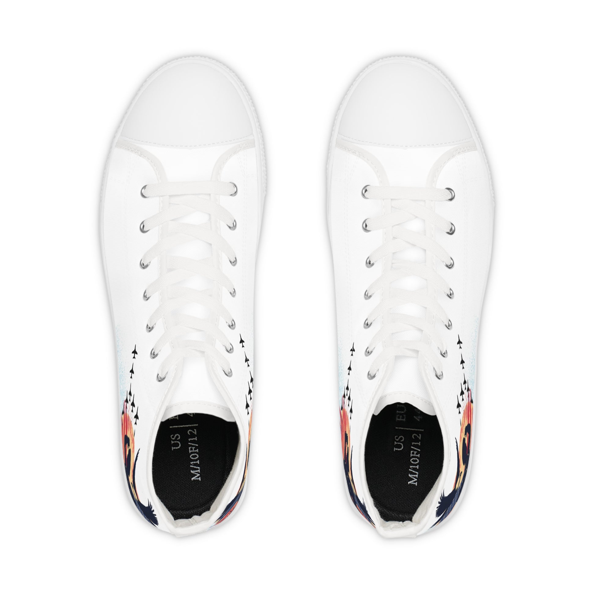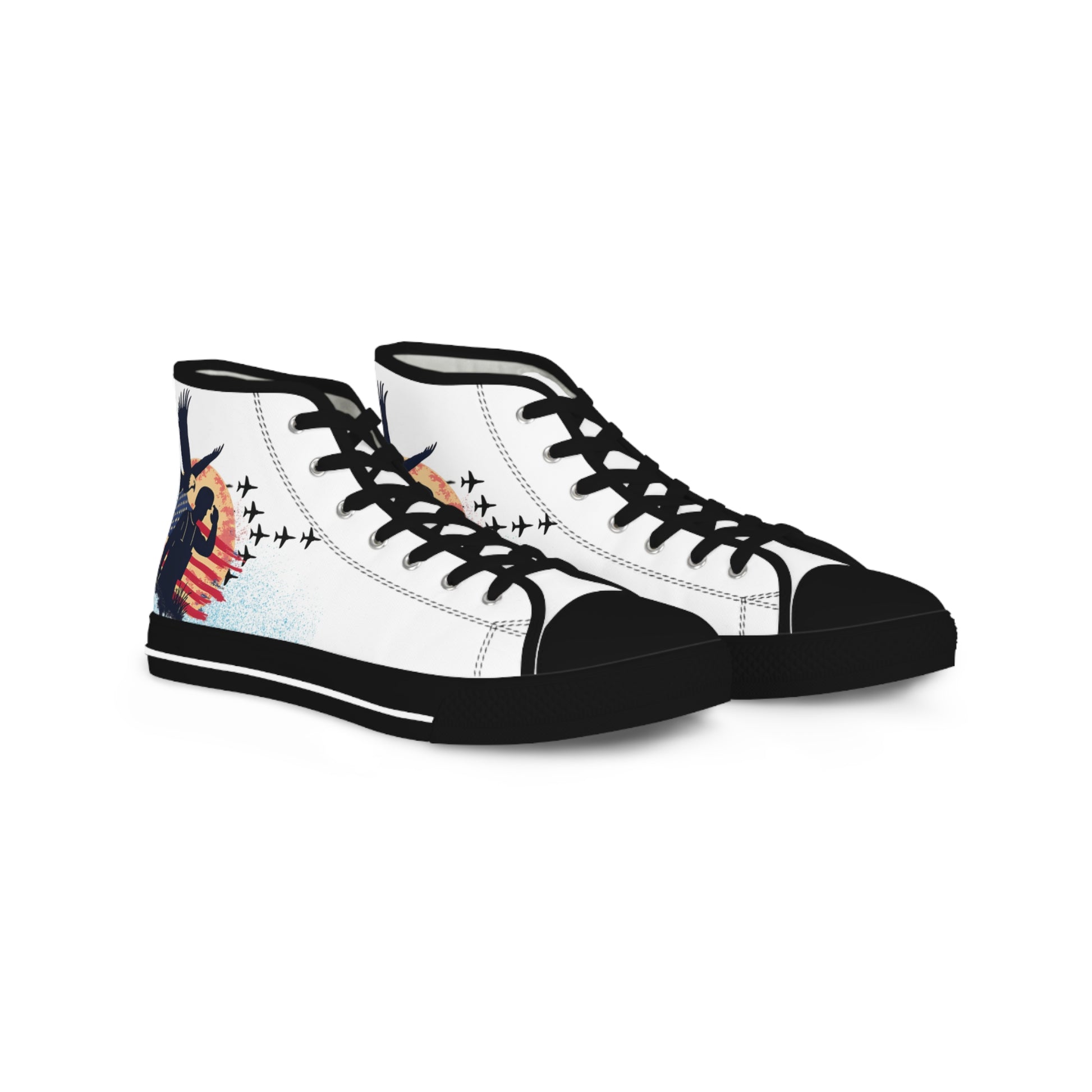 Made with breathable polyester canvas and featuring hi-poly deodorant memory foam insoles, these high top sneakers for men bear all the marks of an awesome shoe. Choose between black or white sole and laces, and enjoy the silver metal eyelets along with the lace-up closure. Add your designs and bring a bespoke staple to life.