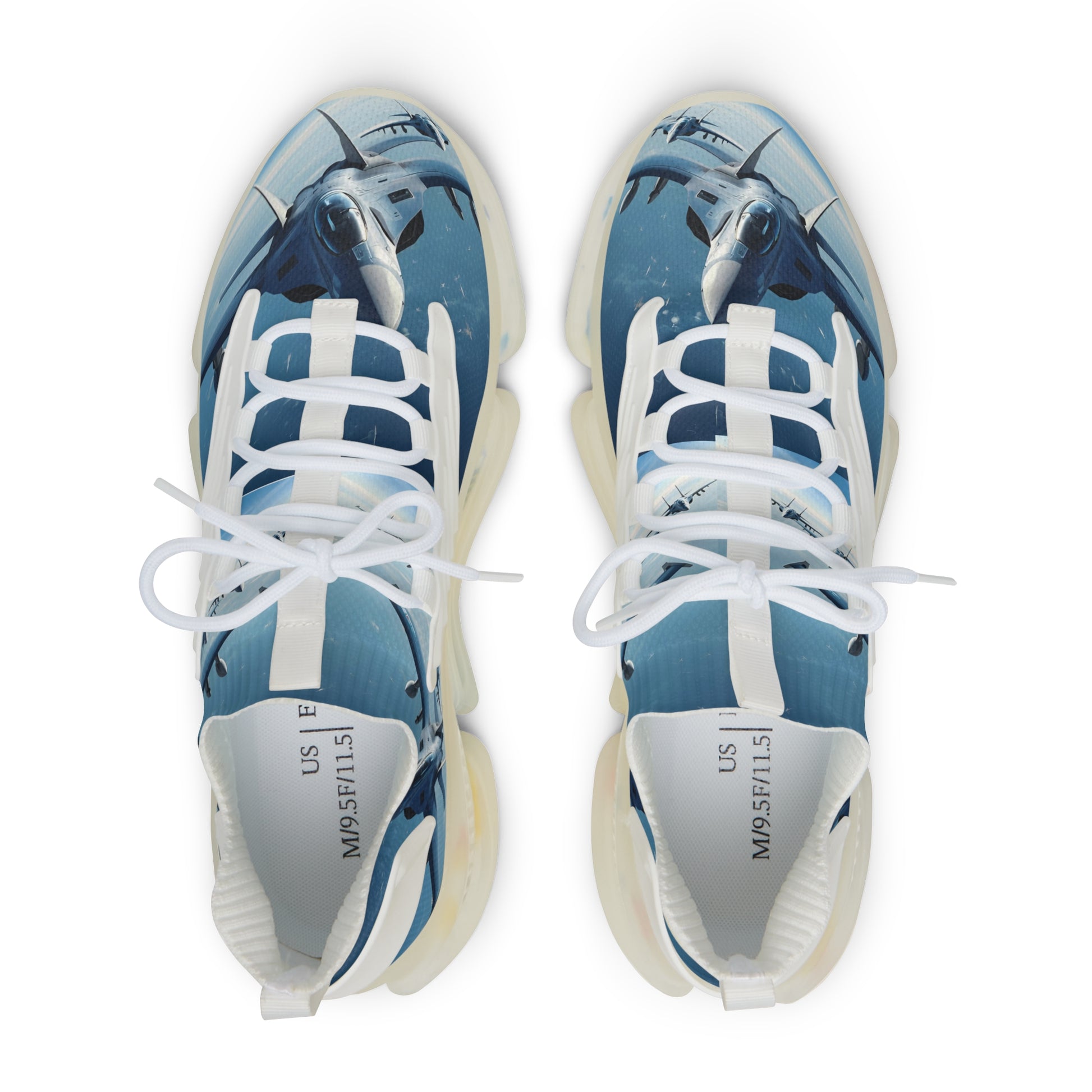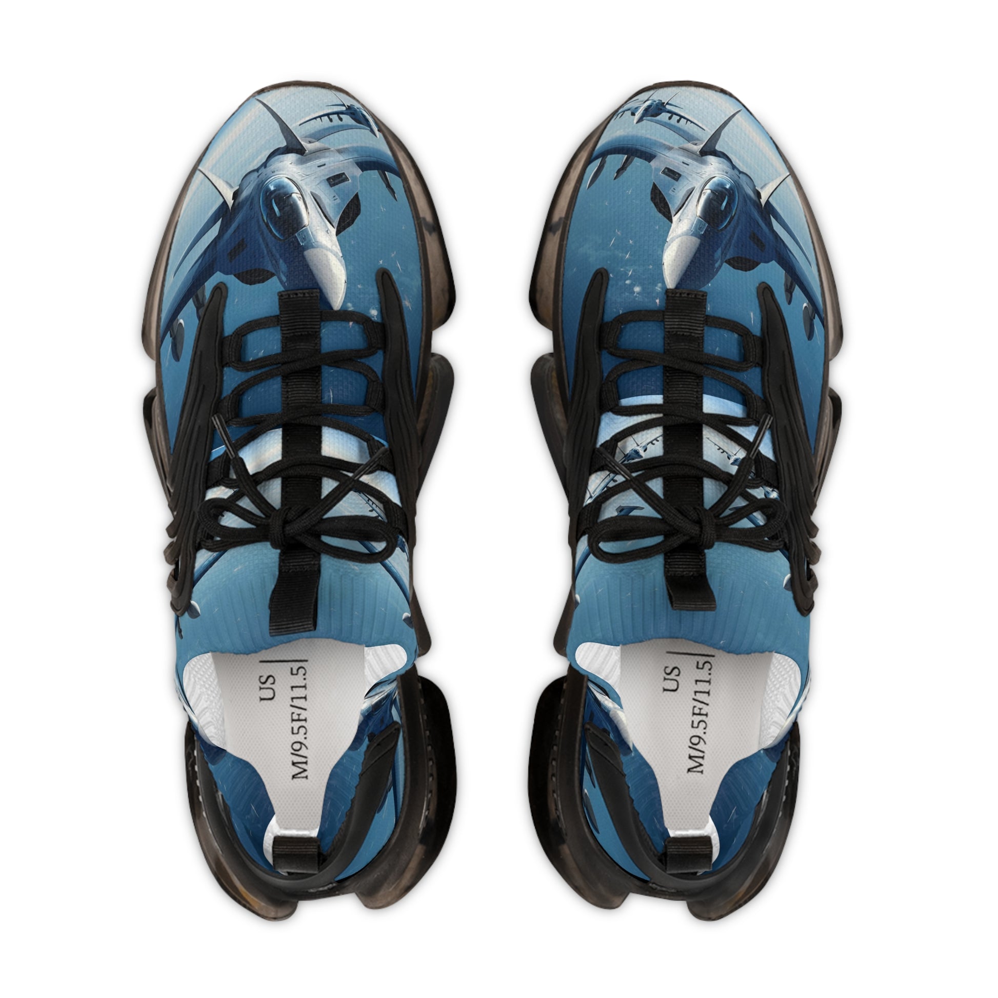 Mesh Sneakers — Men's Blue Shark Graphic Athletic Shoes